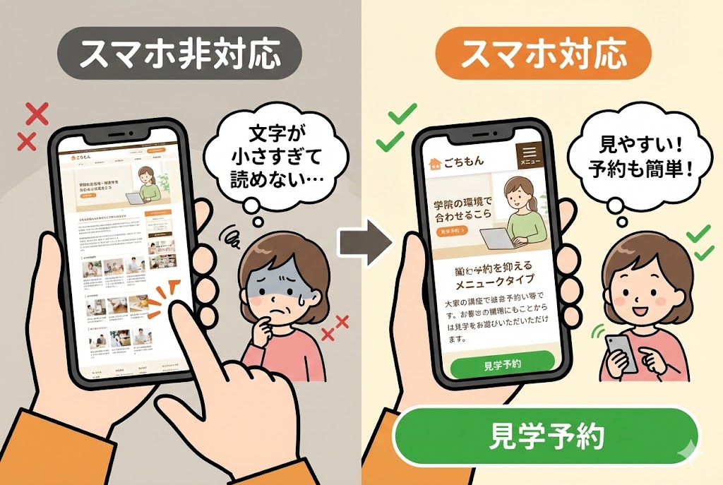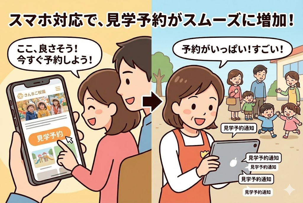 逆に、スマホで見やすく整えられたサイトは、「保護者目線を持っている」「情報発信に積極的」という“安心感と信頼感”を醸成します。