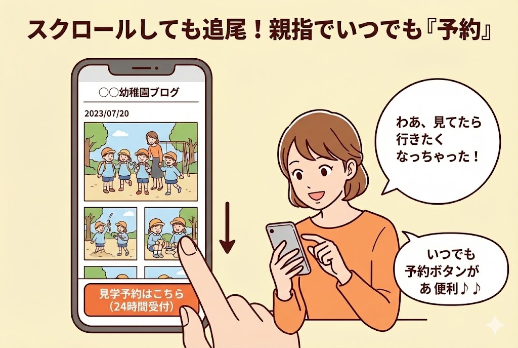 ホームページ上に、園の雰囲気、先生の顔、1日の流れ、そして「Web予約フォーム」があることで、保護者は安心し、「ここなら大丈夫そう」と一歩を踏み出すことができます。