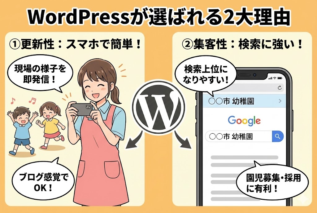 幼稚園・保育園のHPはWordPress一択!更新が楽で集客に強い7つのメリット【2026年保存版】
