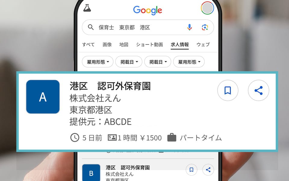 Googleの求人専用枠に掲載するための「特殊なプログラム設定」を弊社が代行します。さらに、保育士さんが「〇〇市 保育士 求人」と検索した際に上位に出やすくなるよう、プロがキーワードを分析・調整。高い求人サイトに頼らない直接応募の仕組みを作ります。
