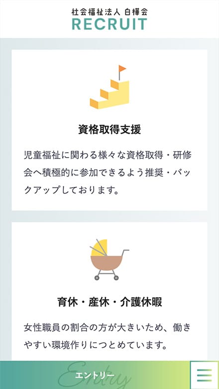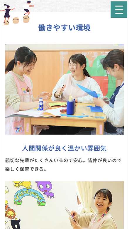 現在お使いのインスタグラムを、採用ページにも連携表示。採用専用のアカウントを新設・運用する手間は不要。普段の保育風景を投稿するだけで、求職者へも「職場のリアルな雰囲気」をしっかり届けられます。